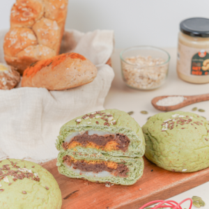 Bánh burger matcha đậu đỏ trứng muối
